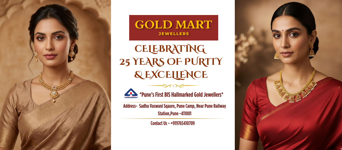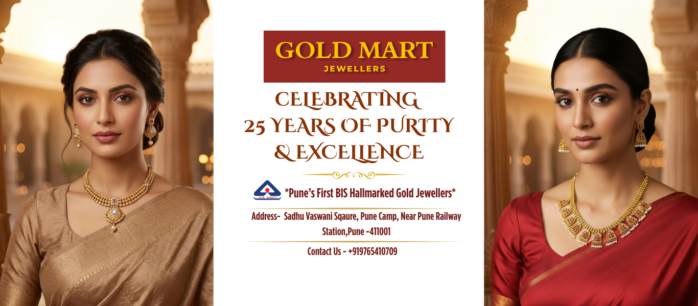 Gold Mart Jewellers is Pune's trusted name in gold and diamond jewellery for over 25 years. We are proud to be Pune's first BIS-Licensed jeweller outside Mumbai and the only store in Pune that combines official BIS hallmarking with advanced Karatometer purity testing on every piece.