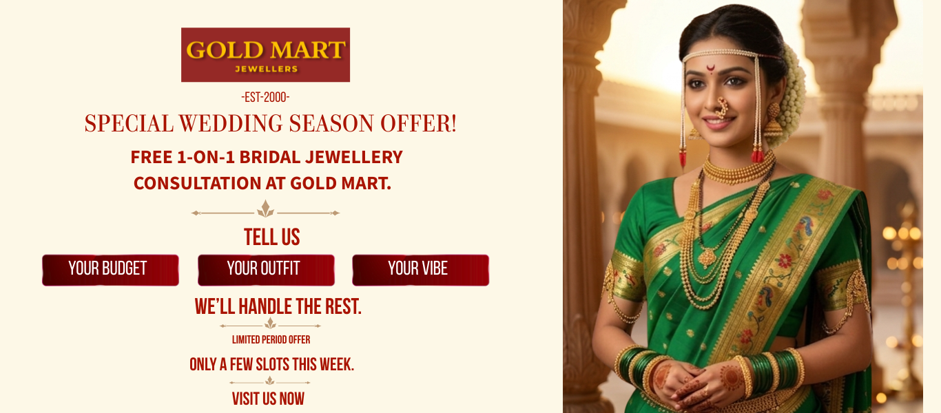 Gold Mart Jewellers is a proudly women-led business, guided by over 25 years of experience in Pune's jewellery industry. Our store is located at Sadhu Vaswani Square, near Pune Railway Station — making us easily accessible to families across Pune. As Pune's first BIS hallmark jeweller, every piece we sell is hallmarked and Karatometer verified for guaranteed purity.